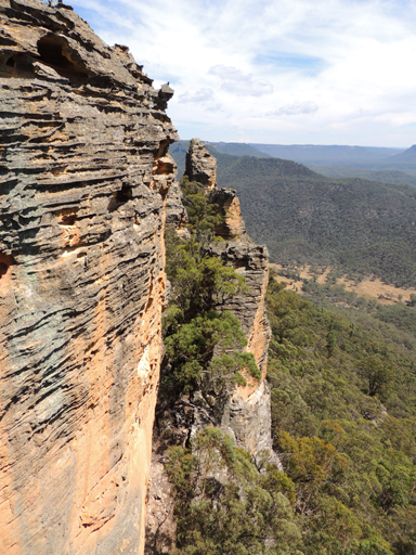 Encompasses three levels, the top level being one to three metres wide, with the valley floor about 40m below. Located on the northern side of the junction of the Great Dividing Range and Ben Bullen Range. Named by Michael Keats on a Bush Club walk, 26th July 2013.